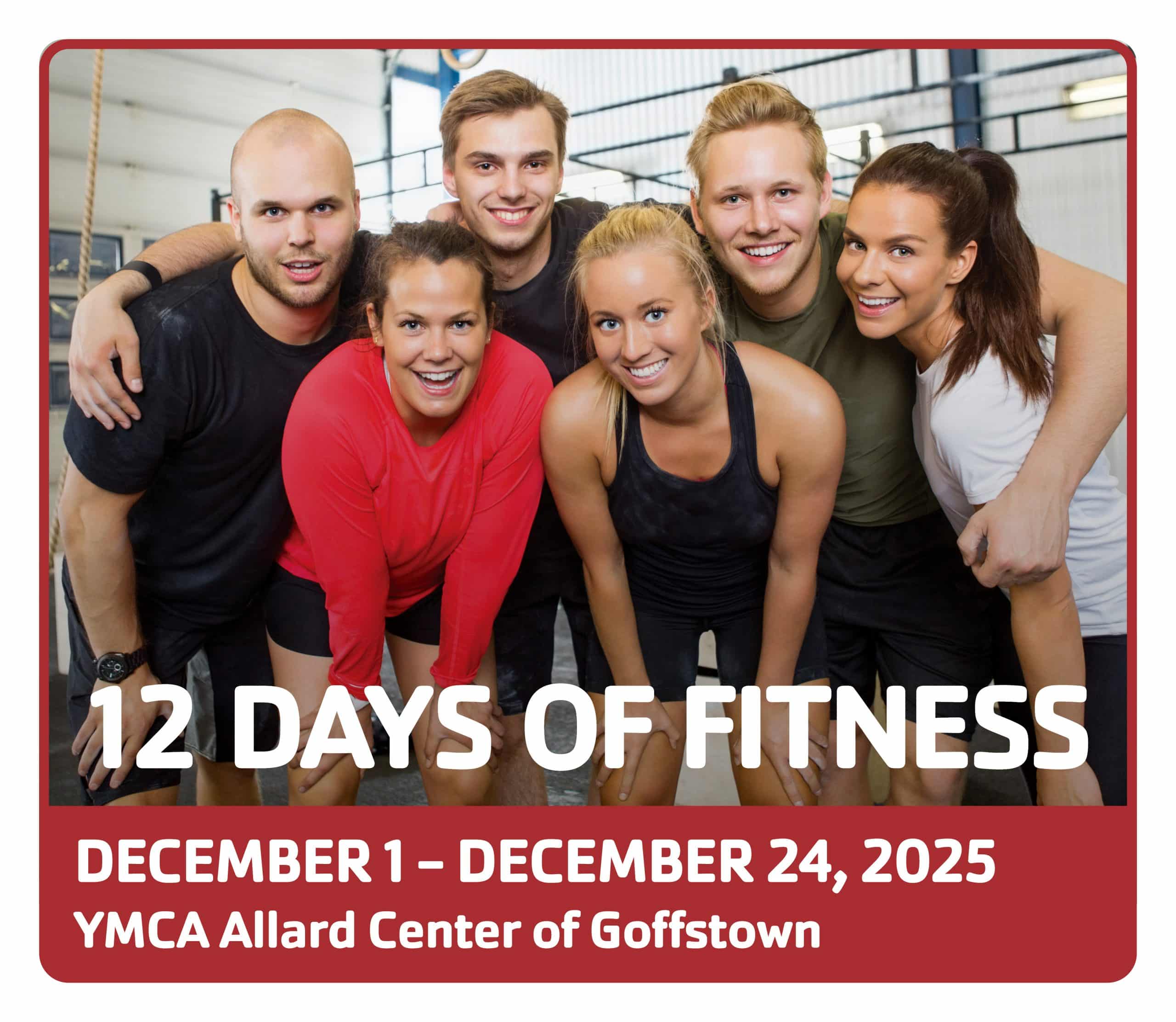 This holiday season, we challenge YOU to complete the 12 Days of Fitness. Members may enter by completing the activities listed below and filling out a punch card during the challenge dates. If you complete all 12 activities, you will receive a YMCA themed prize!