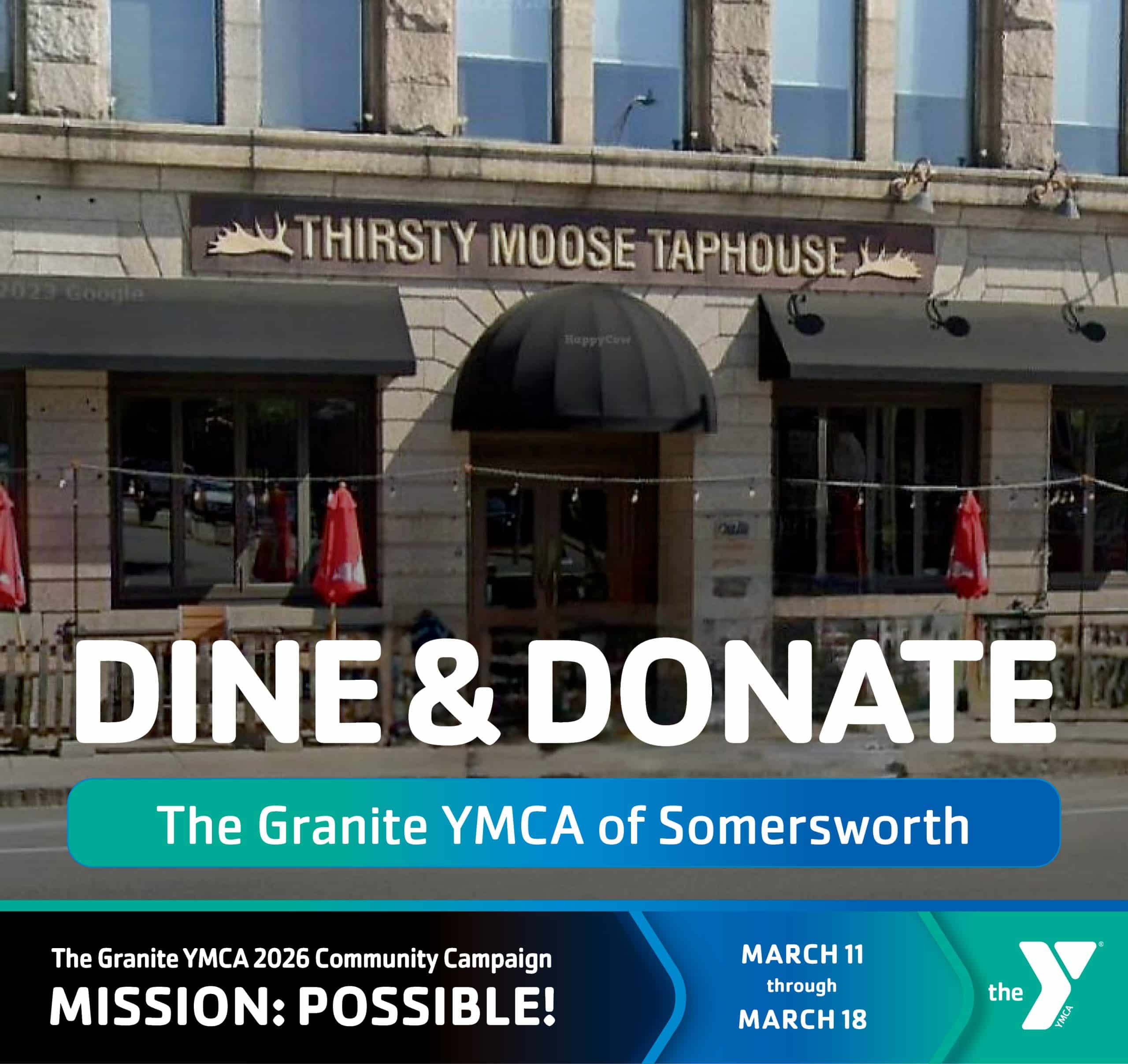 Make dinner plans that make a difference! Join us at The Thirsty Moose on March 18 for a delicious night out in support of The Granite YMCA. From 4:00 – 9:00 pm, a portion of all dinner service sales will be donated back to the Y, helping support vital programs and services for local children and families.